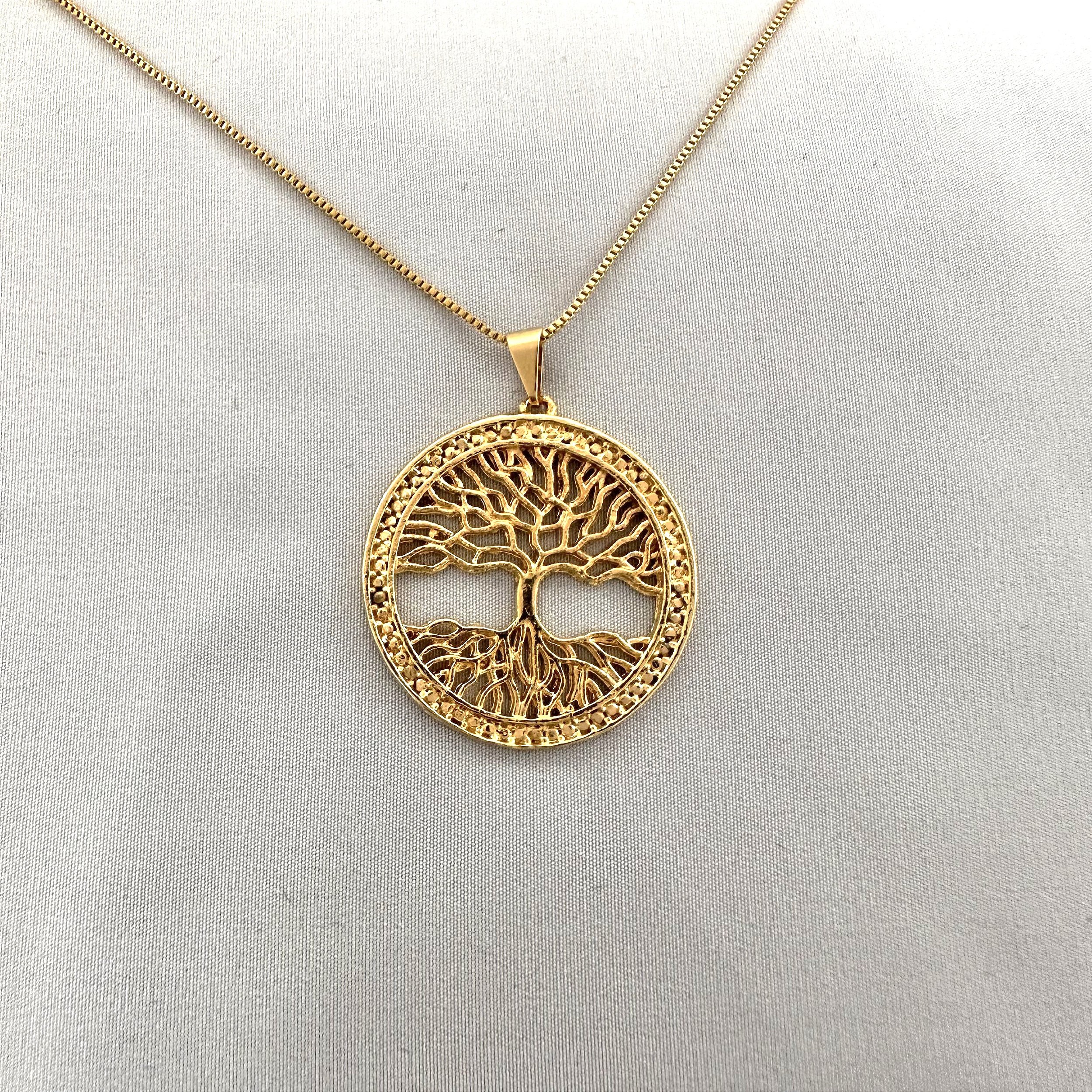 Este colar combina a simbologia da Árvore da Vida com o charme de uma mandala cravejada de detalhes delicados. Representando força, conexão e renovação, o design detalhado dos galhos e raízes transmite equilíbrio e harmonia, enquanto os brilhantes ao redor da mandala adicionam um toque de elegância e luminosidade.